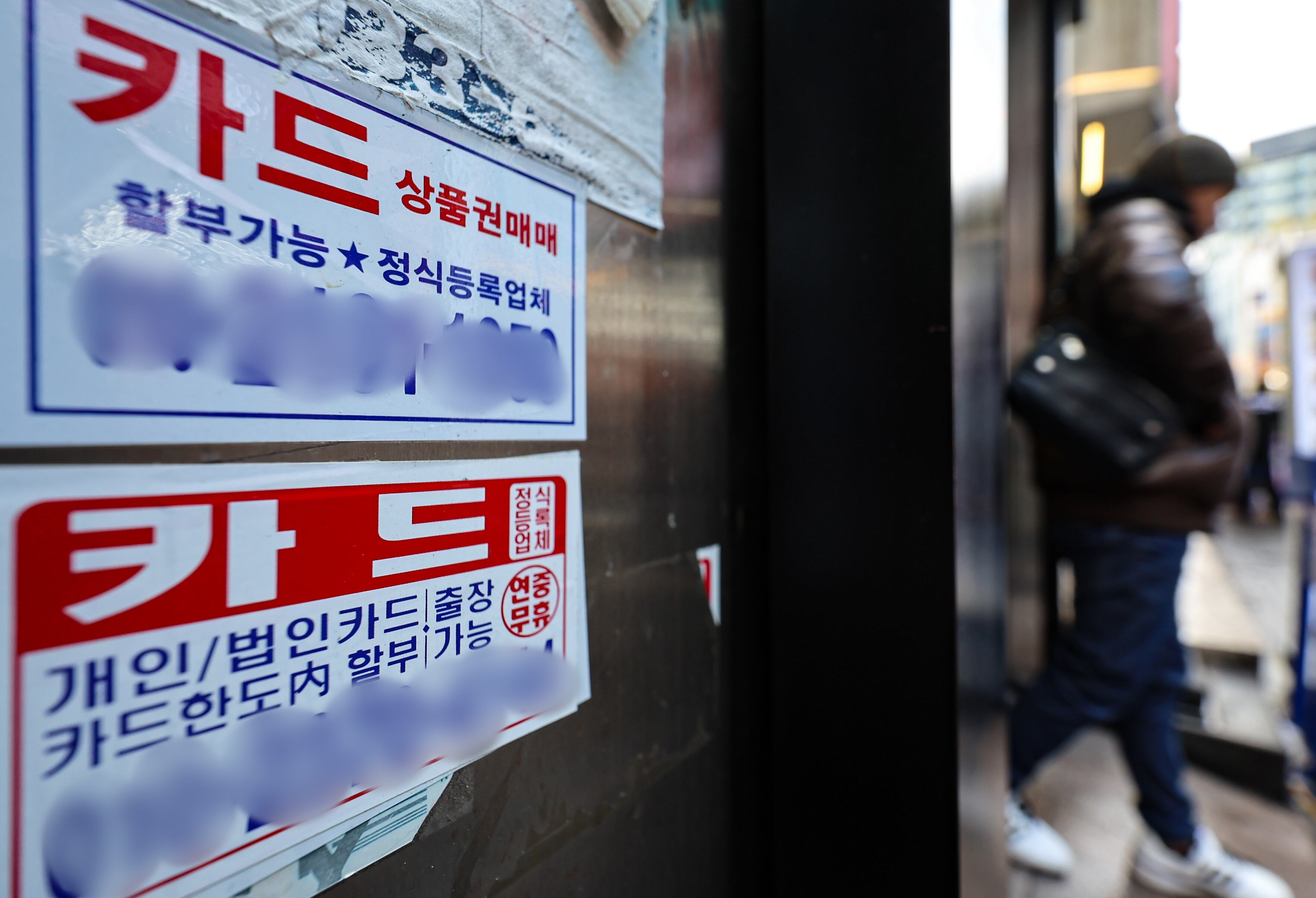 사진은 서울 거리에 붙은 카드론 대출 스티커./뉴스1 |