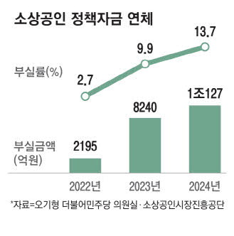 자영업자 위기를 가늠할 수 있는 지표인 소상공인 정책자금 부실률이 역대 최고를 기록했다.