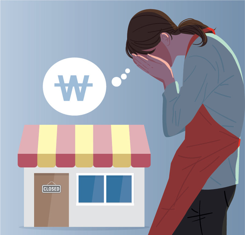 경남에서 식당을 운영했던 40대 자영업자 A 씨. 신종 코로나바이러스 감염증(코로나19) 여파 등으로 손님이 줄어 2022년 식당을 내놨지만 번번이 계약이 불발됐고, 이듬해가 되어서야 정리할 수 있었다. 식당을 정리하는 동안에도 임차료 같은 고정비용은 내야 해서 대출은 불어났고 일부는 갚지 못해 연체됐다. A 씨는 최근까지도 이자를 갚고 있다.