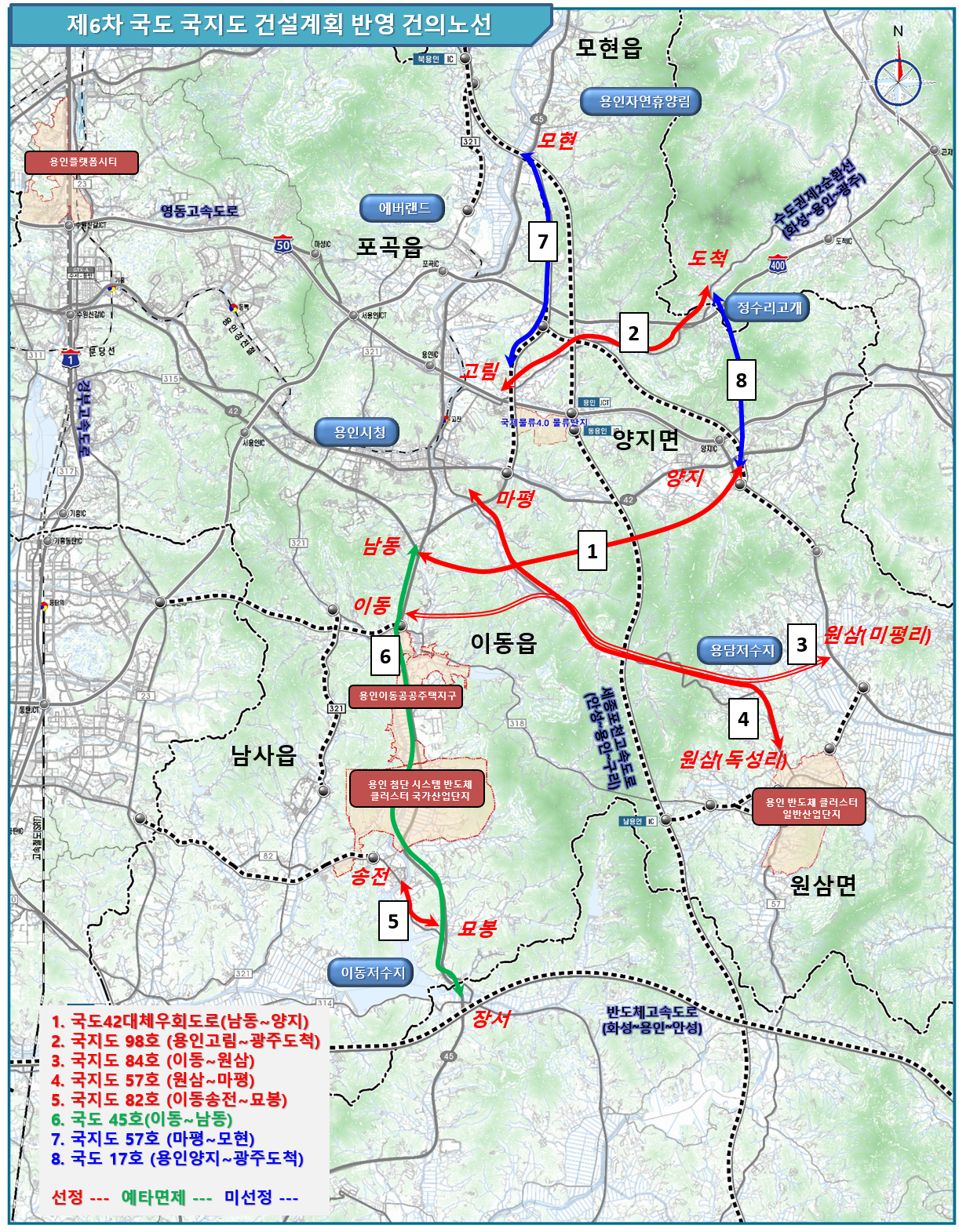 ‘국지도 57호선(처인구 마평동~모현읍)’ 신설 사업은 민자도로와 중복, ‘국지도 82호선(용인 양지면~광주 도척동)’은 사업성이 미비한 것으로 평가돼 예비타당성 조사 대상에 선정되지 않았다.