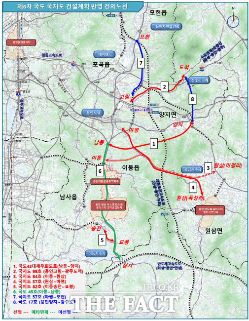 [더팩트ㅣ용인=유명식 기자] 경기 용인시는 관내 5개 도로건설 사업이 국토교통부의 ‘6차 국도·국지도 건설계획’ 일괄예비타당성 조사 대상에 포함됐다고 17일 밝혔다.