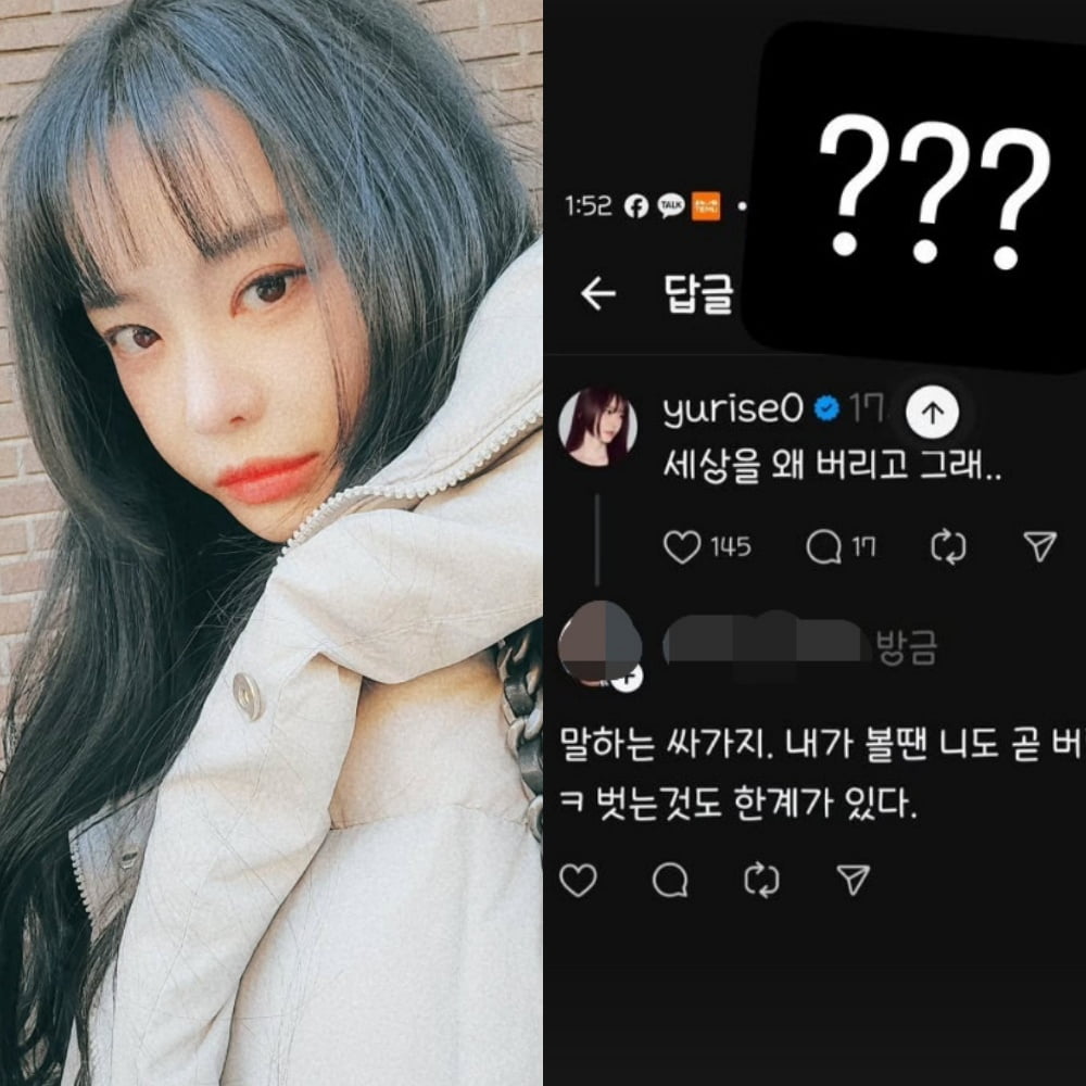 서유리는 17일 자신의 인스타그램 스토리에 "???"이라는 문구와 함께 한 장의 사진을 게재했다.
