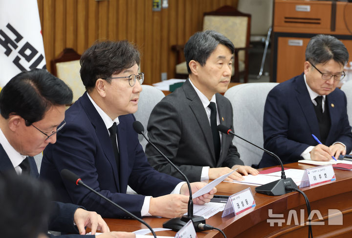 [서울=뉴시스] 고승민 기자 = 권성동 국미의힘 원내대표가 17일 서울 여의도 국회에서 열린 학교 안전 강화를 위한 당정협의회에서 발언하고 있다. 2025.02.17. kkssmm99@newsis.com |
