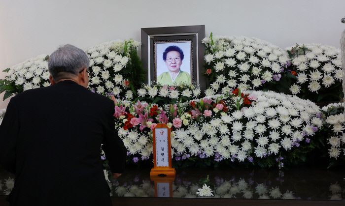 한 시민이 17일 인천 연수구 인천적십자병원 장례식장에 마련된 일본군 ‘위안부’ 피해자 길원옥 할머니의 빈소에서 조문하고 있다. 연합뉴스 |