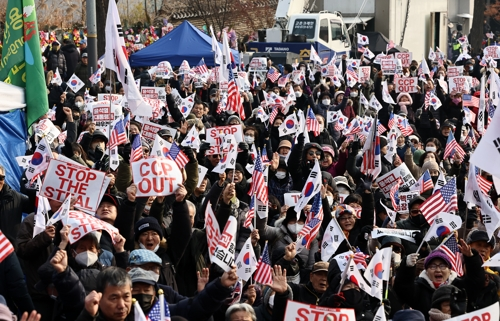 지난 1월 14일 오후 서울 한남동 관저 앞에서 윤석열 대통령 탄핵 반대 집회가 열리고 있다. [사진 출처 = 연합뉴스] |