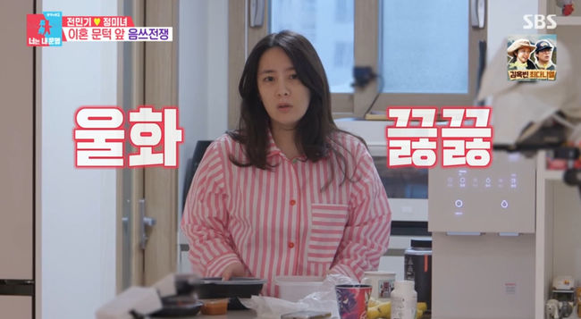 정미녀는 전민기가 음식물 쓰레기를 버리지 않고 냉장고에 넣어둬 분노했다. 정미녀가 잔소리를 하자 전민기는 "그만 좀 해라"라고 말했다. 정미녀는 결국 뒤처리를 시작했다.