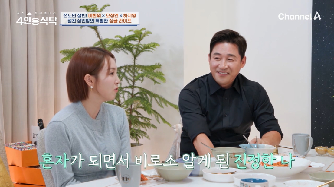 지난 17일 방송된 채널A '절친 토큐멘터리 4인용 식탁'에서는 배우 전노민이 절친 하지영, 이한위, 오정연을 초대해 이야기를 나눴다.
