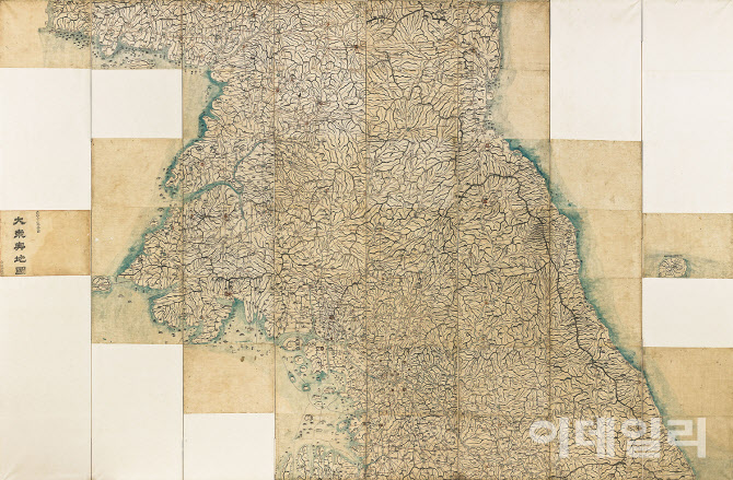 서울옥션 ‘제182회 미술품 경매’에 나온 김정호의 ‘대동여지도’(1861). 병풍 형태로 제작한 3점(북부·중부·남부)을 펼쳐 연결한 전국도다. 가로가 4m에 달하고, 세로가 6m를 넘긴다. 추정가는 3억 2000만∼10억원(사진=서울옥션). |