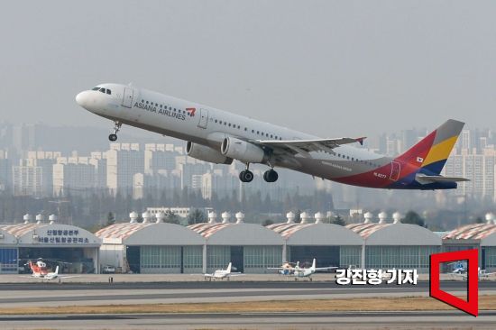 서울 강서구 김포공항에서 아시아나항공 항공기가 이륙하고 있다. 강진형 기자 aymsdream@ |