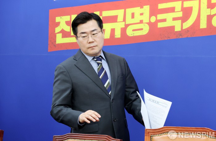 [서울=뉴스핌] 정일구 기자 = 박찬대 더불어민주당 원내대표가 18일 오전 서울 여의도 국회에서 열린 원내대책회의에 참석하고 있다. 2025.02.18 mironj19@newspim.com