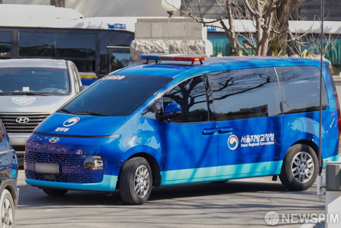 [서울=뉴스핌] 사진공동취재단 = 윤석열 대통령이 탑승한 호송차가 탄핵심판 9차 변론기일에 참석하기 위해 18일 서울 종로구 헌법재판소로 들어오고 있다. 2025.02.18 choipix16@newspim.com