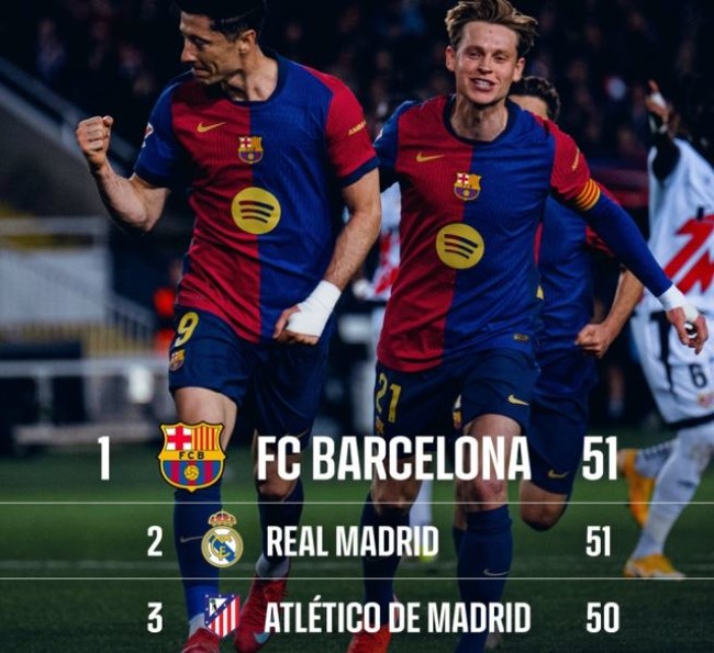 바르셀로나는 18일 오전 5시(한국시간) 스페인 바르셀로나에 위치한 에스타디 올림픽 루이스 컴파니스에서 열린 2024-25시즌 스페인 라리가 24라운드에서 라요 바예카노에 1-0으로 승리했다.
