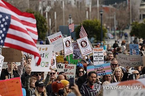 (서울=연합뉴스) 서혜림 기자 = 미국 '대통령의 날'인 17일(현지시간) 미국 곳곳에서 도널드 트럼프 행정부를 규탄하는 시위가 일제히 열렸다.