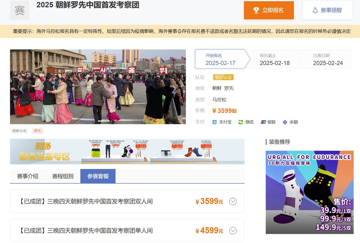 중국의 여행사가 북한 관광 상품을 판매 중인 모습. /즈싱허이 홈페이지 |