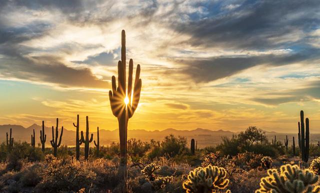 사와로선인장이 독특한 풍광을 자아내는 애리조나주 스코츠데일 사막 풍경. 일반 사막과 달리 물이 풍부하고 생물다양성이 뛰어난 사막이다. 미국관광청 제공 |