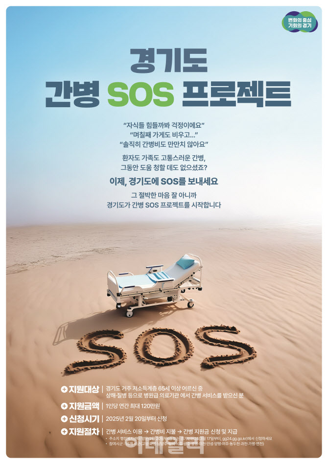지원 대상은 도내 65세 이상 노인 중 기초생활수급자(생계·의료·주거) 또는 차상위계층에 해당하면서 2025년 이후 상해나 질병 등의 이유로 병원급 의료기관 이상에 입원해 간병서비스를 받은 경우다. 다만 경기도형 긴급복지 사업이나 시군 자체 간병비 지원 사업 등 다른 사업을 통해 간병비를 지원받는 경우는 제외된다.