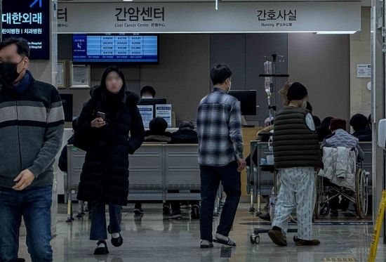 정부의 의대정원 2000명 확대에 반발해 전국 주요병원 전공의들이 의료현장을 떠나 의료대란 사태가 발생한지 일년을 맞은 18일 서울 종로구 서울대학교병원에서 환자와 내원객들이 이동하고 있다. 2025.2.18. 강진형 기자 |