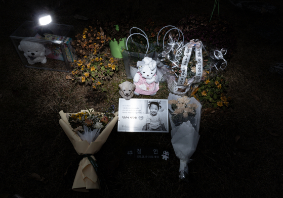 아동학대 예방의 날인 지난해 11월 19일 오후 경기도 양평군 안데르센 메모리얼 파크에 양부모에게 장기간 학대를 당하다 숨진 16개월 영아 정인(가명)양의 묘역에 추모객들이 선물한 꽃, 인형 등이 놓여 있다. 아동학대 예방의 날은 아동학대의 예방과 방지에 대한 관심을 높이기 위해 제정한 법정기념일이다. 뉴스1 |