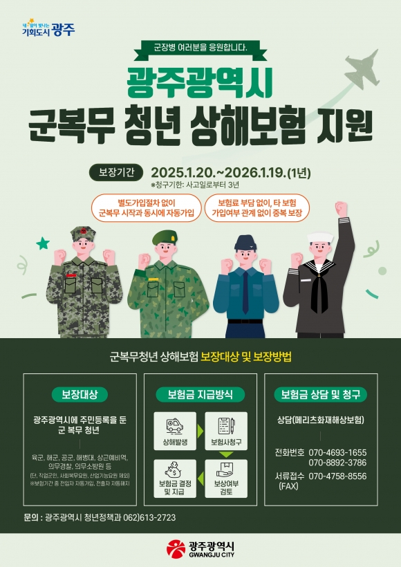 군복무 청년 상해보험 지원 포스터. 광주광역시 제공 |