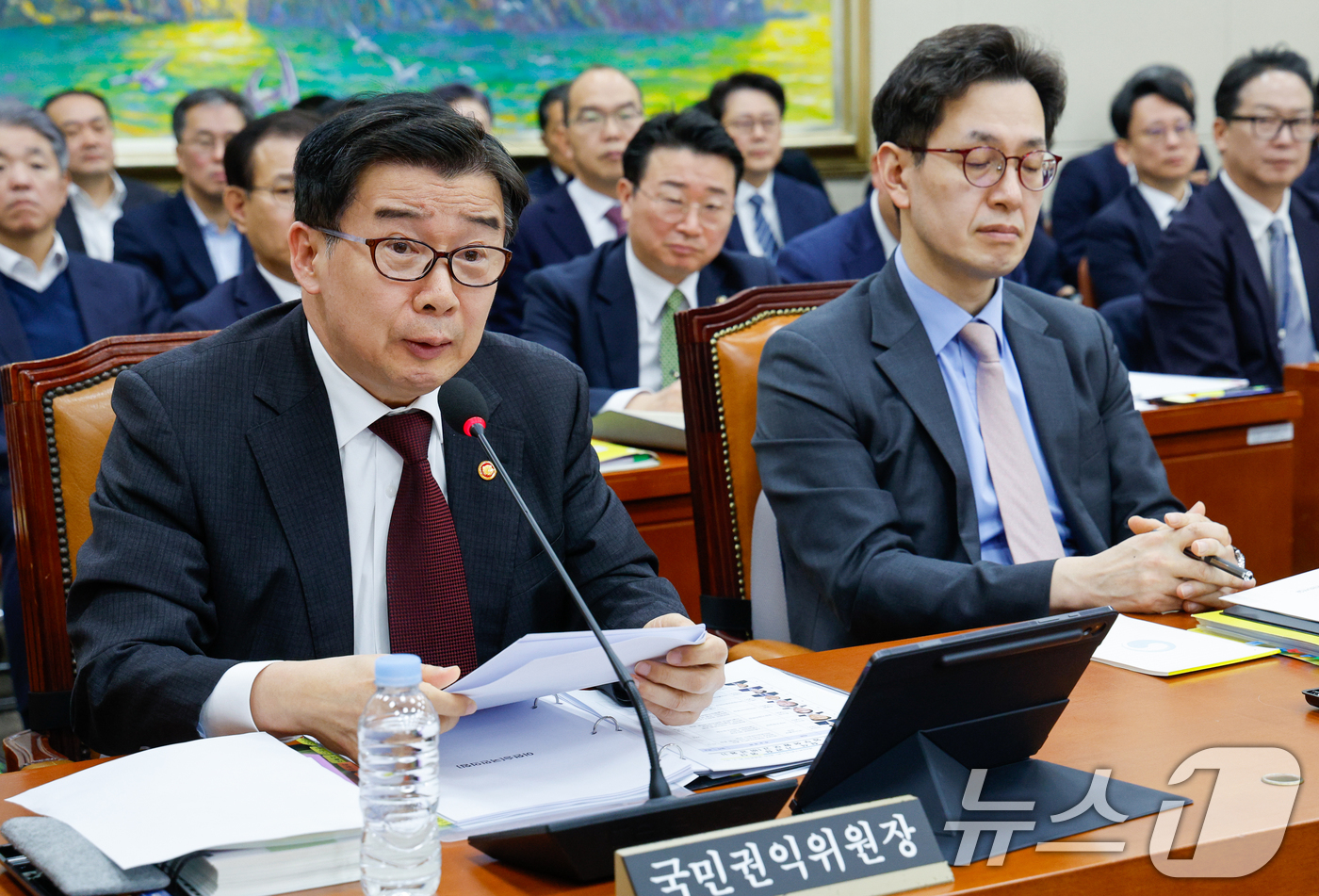 유철환 국민권익위원장이 19일 서울 여의도 국회에서 열린 정무위원회 제422회 국회(임시회) 제2차 전체회의에 출석해 업무보고를 하고 있다. 2025.2.19/뉴스1 ⓒ News1 안은나 기자 |