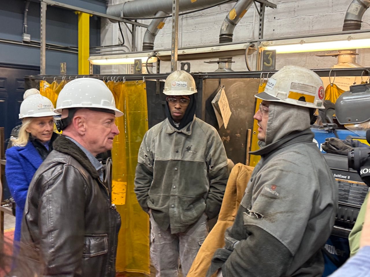 켈리 의원은 조선소 현장에서 용접공, 조립공 등을 일일이 만나 근무 현황을 청취했다. “그 전에는 어디에서 일했나” “하루에 몇 시간을 일하나” “한화가 인수한 뒤 뭐가 달라졌나” “근무 만족도는 어떤가”라며 질문 공세를 퍼부었다. 보육업에 종사했었다는 여성 케이시는 “용접공으로 기술을 배우고 있는데 그 전보다 조선소의 급여가 훨씬 많다”며 웃었다.