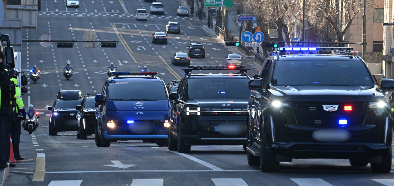 [헤럴드경제=임세준 기자] 윤석열 대통령이 탑승한 호송차가 20일 오전 서울 서초구 서초역사거리에서 서울중앙지법으로 향하고 있다. 서울중앙지법 형사합의25부(지귀연 부장판사)는 이날 내란 우두머리 혐의를 받는 윤 대통령의 1차 공판준비기일을 진행하며, 이번 기일에서는 윤 대통령 측이 청구한 구속 취소에 대한 심문도 함께 진행될 예정이다.