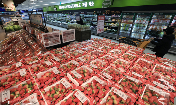 20일 서울 시내 대형마트에 딸기가 진열되어 있다. 뉴스1 |