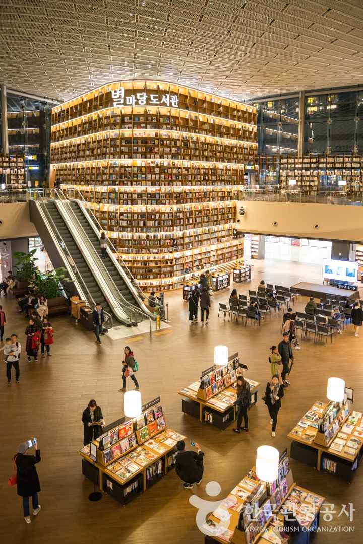 같은 건물 내에 있는 별마당 도서관은 독특한 인테리어와 분위기로 많은 이들의 발길을 끌고 있다.