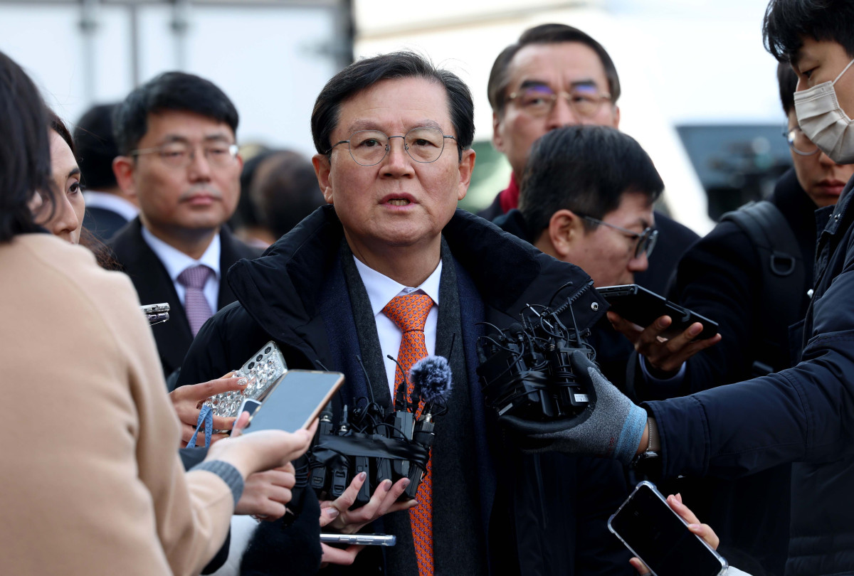 윤석열 대통령의 탄핵심판 첫 변론기일인 14일 서울 종로구 헌법재판소에서 윤석열 대통령 측 변호인단인 윤갑근 변호사가 변론을 마치고 취재진의 질문에 답변하고 있다. 신태현 기자 holjjak@ |