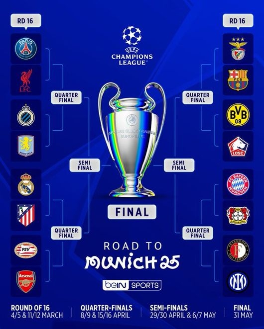 16강 경기는 홈 앤드 어웨이 방식으로 치러진다. UCL 16강 1차전은 현지시간으로 다음 달 5일과 6일, 2차전은 12일과 13일 열린다.