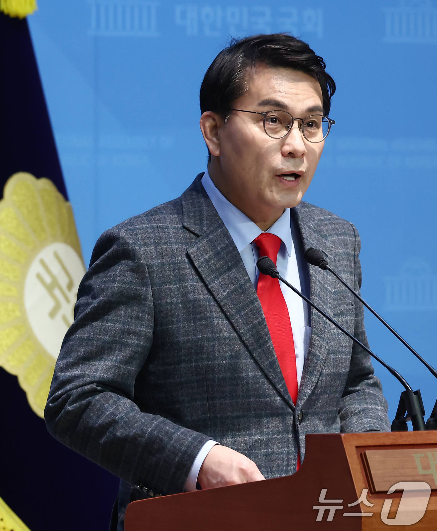 (서울=뉴스1) 김민지 기자 = 윤상현 국민의힘 의원이 23일 오전 서울 여의도 국회 소통관에서 12·3 비상계엄 후 윤석열 대통령을 수사한 고위공직자범죄수사처(공수처)에 대해 검찰총장이 특별수사팀을 꾸려 수사에 나설 것을 촉구하는 기자회견을 하고 있다. 2025.2.23/뉴스1