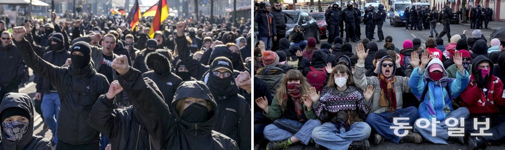 AfD 집회 맞은 편에서는 좌파 단체들의 집회가 열리고 있었다. 이들은 AfD 지지자들에게 “나치야 꺼져라”, “인종 차별주의자는 필요 없다”고 소리쳤다. 이날 베를린 시내 곳곳에선 극우와 극좌 지지층의 ‘맞불 집회’를 벌였다. 양측이 욕설과 원색적인 비난을 퍼부으며 긴장이 고조되자 당국은 경찰을 대거 배치하며 삼엄한 경계를 펼쳤다.
