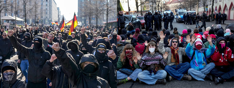 AfD 집회 맞은편에서는 좌파 단체들의 집회가 열리고 있었다. 이들은 AfD 지지자들에게 “나치야 꺼져라”, “인종차별주의자는 필요 없다”고 소리쳤다. 이날 베를린 시내 곳곳에선 극우와 극좌 지지층이 ‘맞불 집회’를 벌였다. 양측이 욕설과 원색적인 비난을 퍼부으며 긴장이 고조되자 당국은 경찰을 대거 배치하며 삼엄한 경계를 펼쳤다.
