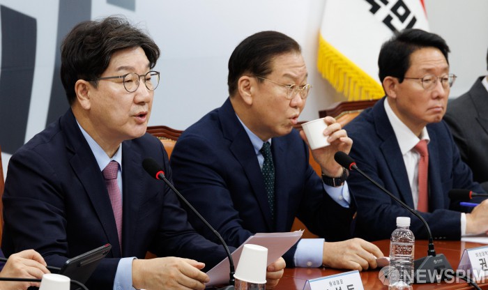 서울=뉴스핌] 윤창빈 기자 = 권성동 국민의힘 원내대표가 24일 오전 서울 여의도 국회에서 열린 비상대책위원회의에서 모두발언을 하고 있다. 2025.02.24 pangbin@newspim.com