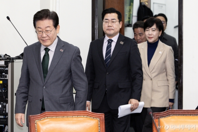 (서울=뉴스1) 이재명 기자 = 이재명 더불어민주당 대표와 박찬대 원내대표를 비롯한 최고위원들이 24일 오전 서울 여의도 국회에서 열린 최고위원회의에 참석하고 있다 . 2025.2.24/뉴스1 Copyright (C) 뉴스1. All rights reserved. 무단 전재 및 재배포, AI학습 이용 금지. /사진=(서울=뉴스1) 이재명 기자 |