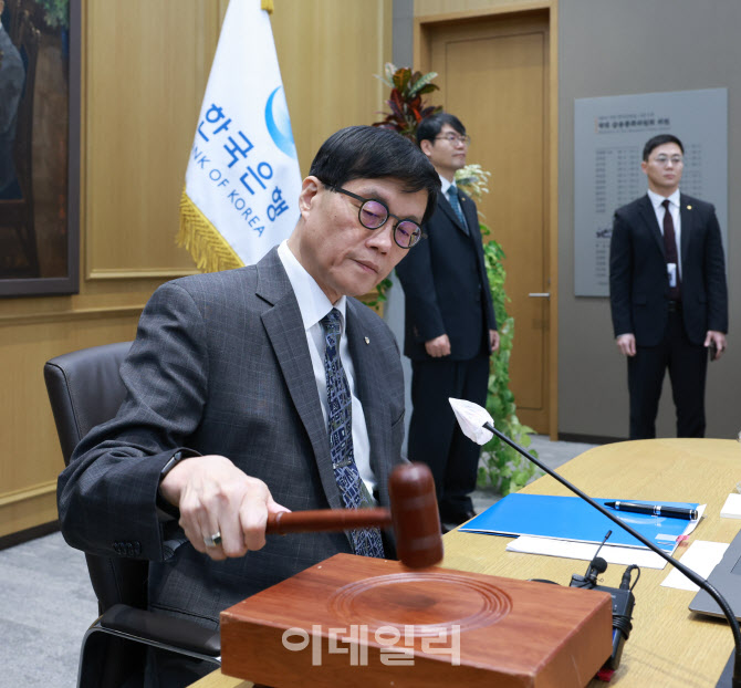 이창용 한국은행 총재가 25일 서울 중구 한국은행 본관에서 열린 금융통화위원회에서 의사봉을 두드리고 있다. (사진=한국은행) |