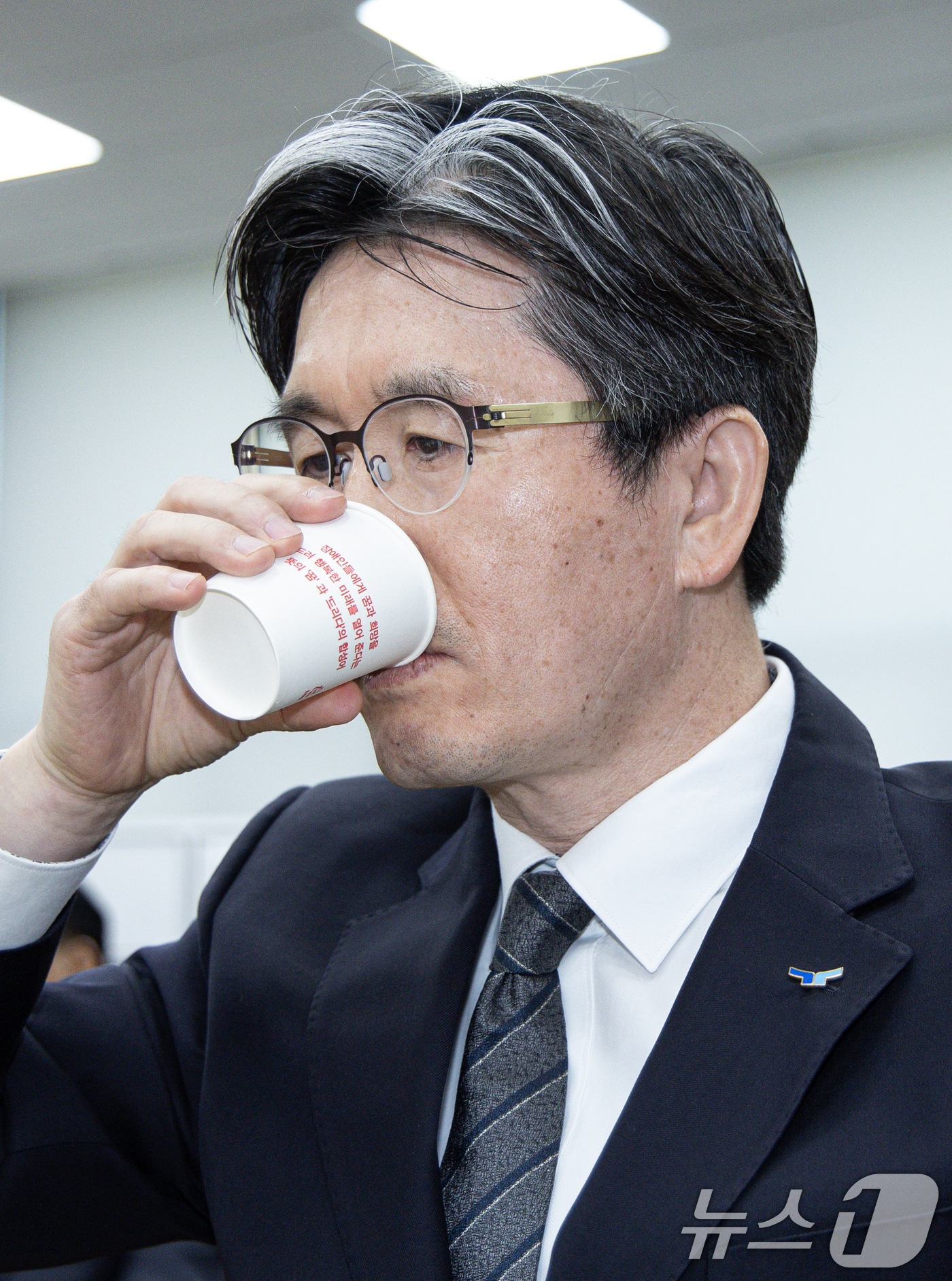 (서울=뉴스1) 이재명 기자 = 오동운 고위공직자범죄수사처(공수처) 처장이 25일 오전 서울 여의도 국회에서 열린 윤석열 정부의 비상계엄 선포를 통한 내란 혐의 진상규명 국정조사 제5차 청문회에서 의원 질의에 답변을 마친 후 물을 마시고 있다. 2025.2.25/뉴스1