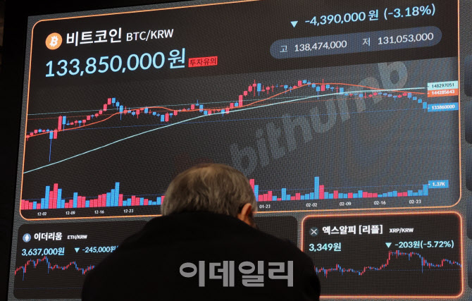 [이데일리 방인권 기자] 도널드 트럼프 미국 대통령 당선 직후 10만달러까지 돌파했던 비트코인이 24일(현지시간) 큰 폭으로 하락하며 9만2000달러선 아래까지 밀려난 가운데 25일 서울 강남구 암호화폐(가상화폐) 거래소 빗썸 라운지 시세 전광판에 비트코인을 비롯한 주요 가상화폐 시세가 표시되고 있다.