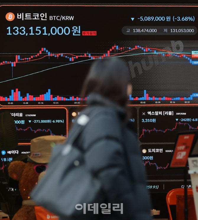 [이데일리 방인권 기자] 도널드 트럼프 미국 대통령 당선 직후 10만달러까지 돌파했던 비트코인이 24일(현지시간) 큰 폭으로 하락하며 9만2000달러선 아래까지 밀려난 가운데 25일 서울 강남구 암호화폐(가상화폐) 거래소 빗썸 라운지 시세 전광판에 비트코인을 비롯한 주요 가상화폐 시세가 표시되고 있다.