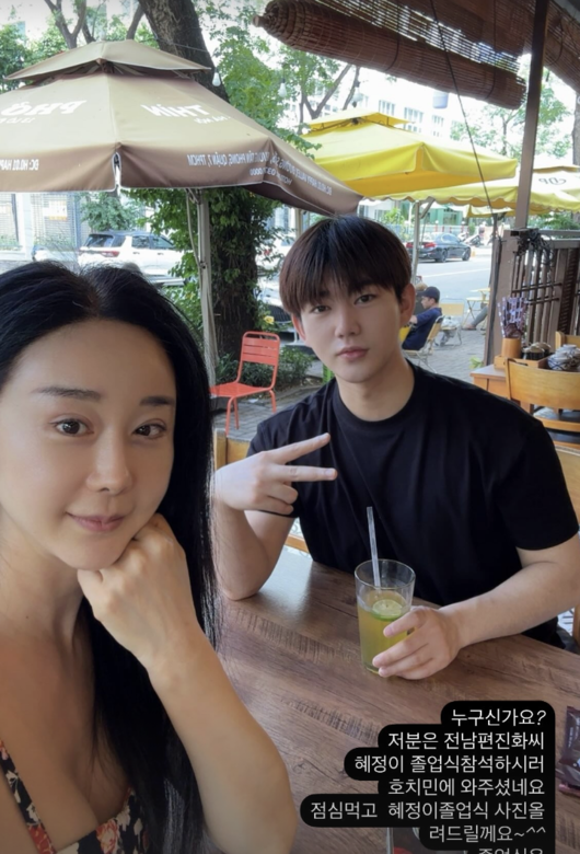이어 함소원은 "혜정이 졸업식 참석하시러 호치민에 와주셨네요. 점심 먹고 혜정이 졸업식 사진 올려드릴게요. 졸업식은 한국 시각 3:30 시작입니다"라고 설명했다.