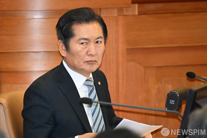 [서울=뉴스핌] 사진공동취재단 = 정청래 법제사법위원장이 25일 서울 종로구 헌법재판소 대심판정에서 열린 윤석열 대통령 탄핵심판 최종 변론에 출석하고 있다. 2025.02.25 photo@newspim.com