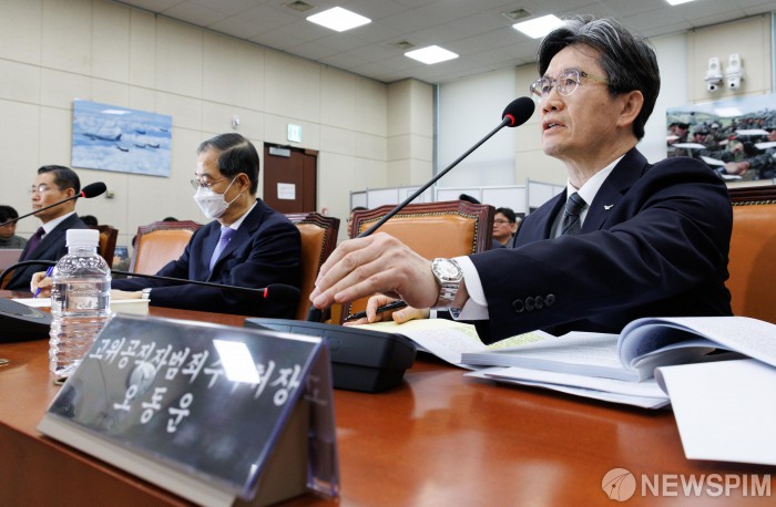 국민의힘은 오동운 고위공직자범죄수사처(공수처) 처장을 상대로 영장 청구·발부 과정에 관해 물었고, 오 처장은 '문제가 없다'는 입장을 되풀이했다.