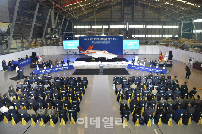 25일 부산 대한항공 테크센터에서 저피탐 무인 편대기 출고 행사가 진행되고 있다. (사진=국방과학연구소) |