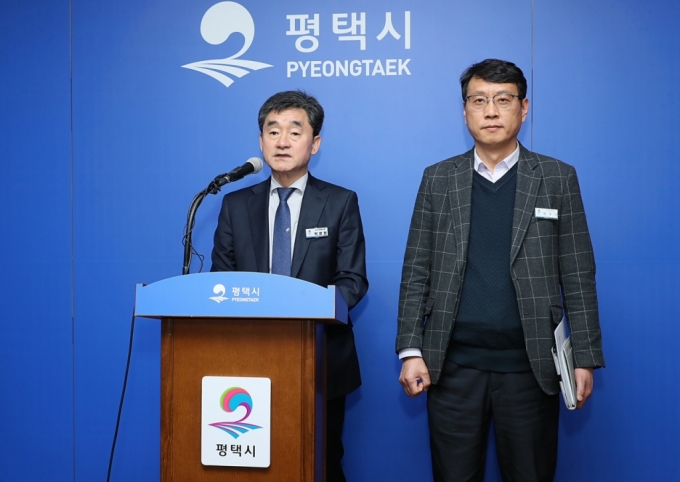 박영철 평택시 도시주택국장 25일 언론브리핑에서 최근 증가하는 미분양 주택에 대한 입장을 밝혔다./사진=평택시 |