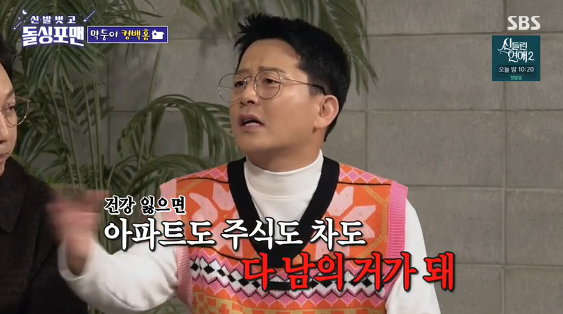 이날 김준호는 탁재훈, 임원희, 이상민 등 세 명의 MC가 먼저 와있는 스튜디오에 뒤늦게 등장해 "건강해야 한다. 건강 잃으면 아파트도, 주식도, 차도 다 남의 것이 된다. 다 필요없다"고 말했다.