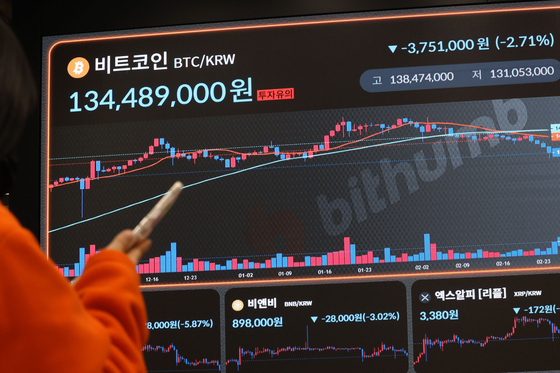비트코인 가격이 급락하며 9만 달러 선이 무너졌다. 미국 코인베이스에 따르면 25일 오전 10시 44분(현지시간) 기준 비트코인 1개당 가격은 8만8091달러(약 1억2645만원)에 거래됐다. 사진은 25일 서울 빗썸라운지 강남점. [연합뉴스]