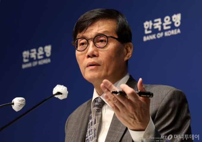 이창용 한국은행 총재가 25일 서울 중구 한국은행 본관에서 금융통화위원회 본회의 후 열린 통화정책방향 기자 간담회에서 발언하고 있다. /사진-뉴스1 |