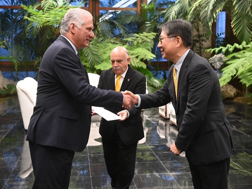쿠바 외교부에 따르면 디아스카넬 대통령은 이날 한국을 비롯해 벨라루스, 체코, 보스니아 헤르체고비나, 네팔, 피지, 나우루 등 7개국 대사를 접견하고 신임장을 받았다.