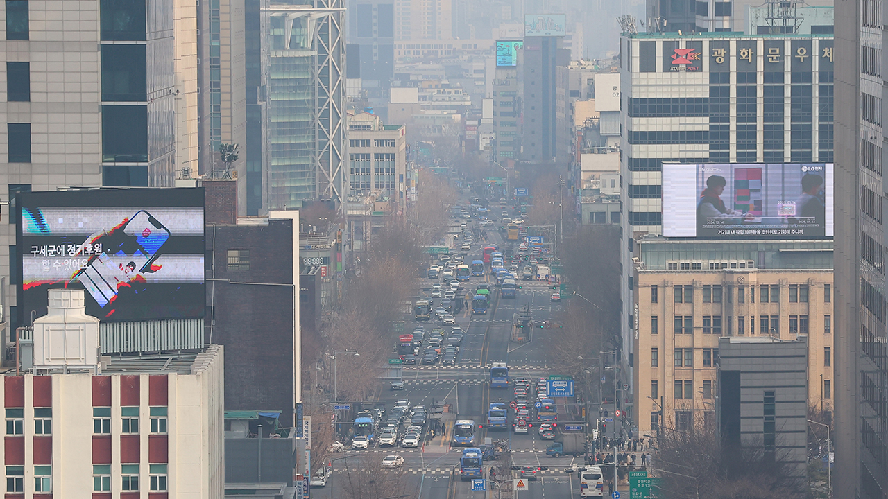 ▲ 수도권을 비롯한 전국 곳곳이 미세먼지 나쁨을 보인 지난 16일 서울 종로 일대가 뿌연 미세먼지에 갇혀 있다.