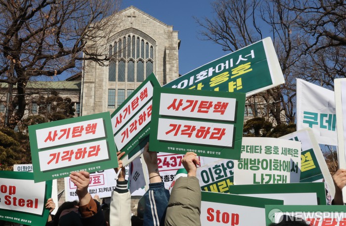 윤석열 대통령 탄핵 반대 이화여대 학생 시국선언 집회
